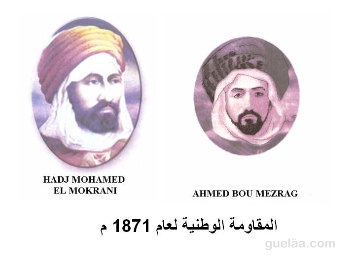 Aujourd'hui encore, Guelâa est très fière de sa propre histoire et des personnalités qu’ils l’ont marquée, comme par exemple El Mokrani, colonel des Beni Abbas. Dans le mouvement de libération de 1871 ce sont surtout les Kabyles qui ont mené un combat de résistance acharnée contre les colonisateurs français. Parmi leurs chefs, El Mokrani, un enfant de Guelâa, a comploté et mené l'insurrection de 1871. À l’époque la Prusse luttait contre les Français. Dans le seul but d’affaiblir la France, les Prussiens soutenaient les rebelles Guelâaouis, on raconte même qu’ils avaient monté une forge d'armes. La victoire prussienne a donné aux Kabyles l'impulsion à la résistance.