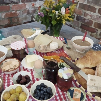 Le copieux 16,00€ – Das große Frühstück: Orangensaft, Croissant, Baguette, Landbrot, Butter, Marmelade, Honig, Ei, Käse, Wurst (auf Wunsch), Früchte + eine Tasse Kaffee, Tee oder Kakao